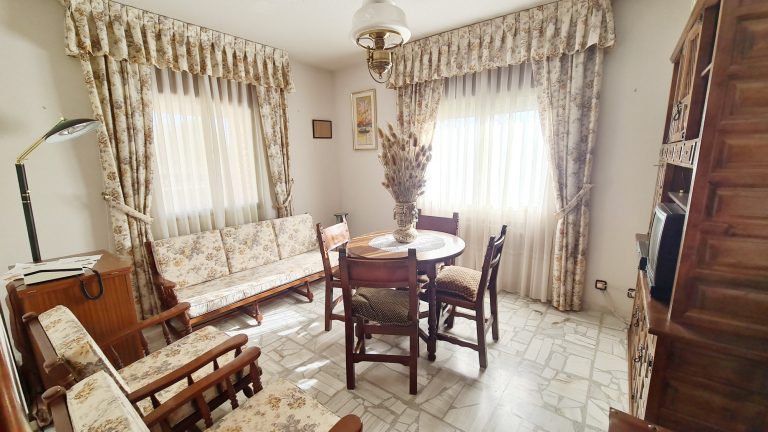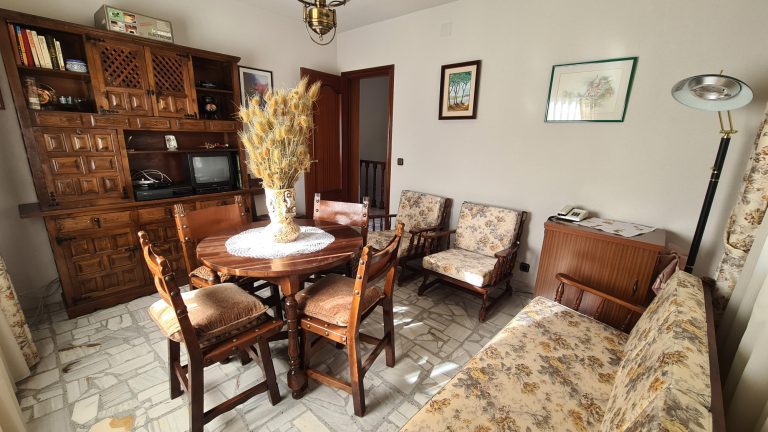 Planta baja: Porche de entrada, recibidor con armario y salida a porche trasero, salón comedor con chimenea, cocina independiente con comedor, dormitorio doble, baño completo y garaje.