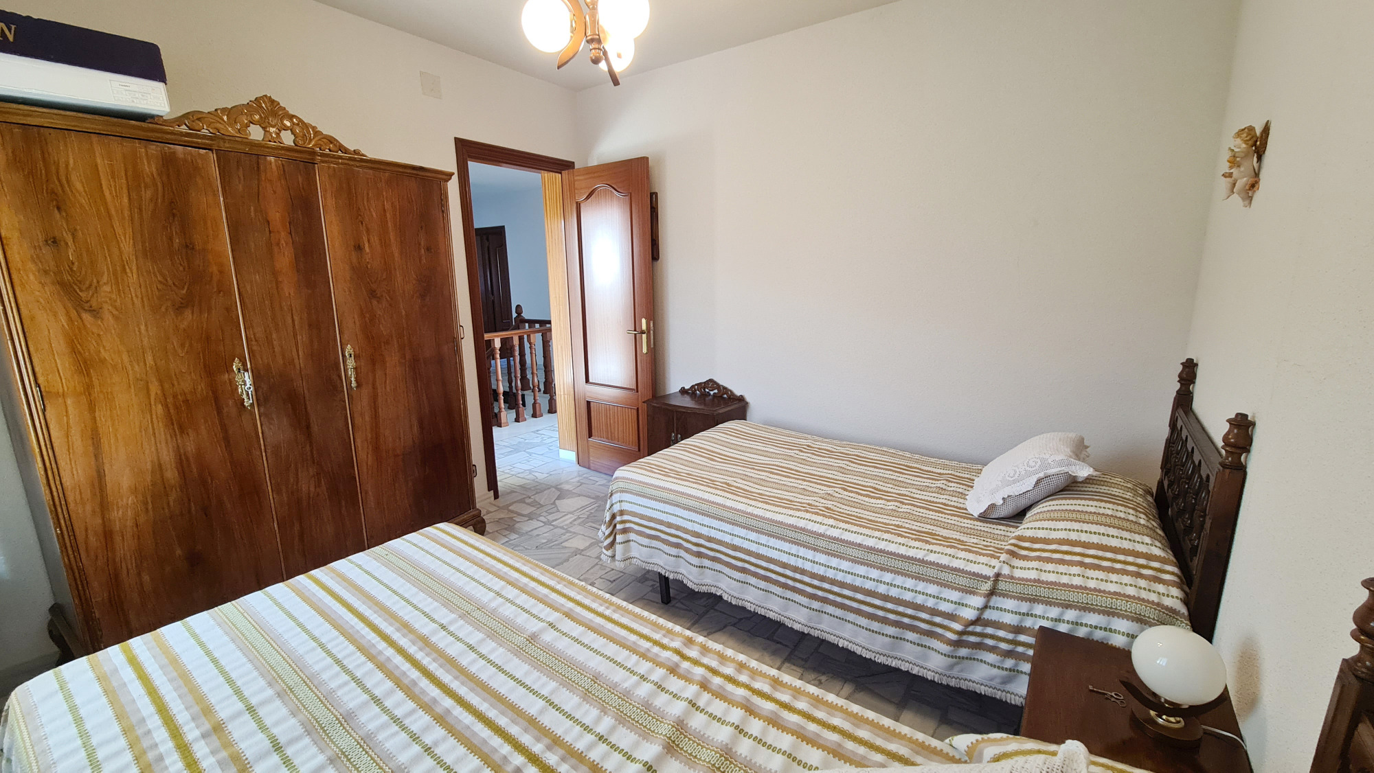 Planta primera: distribuidor con salida a dos terrazas, cinco dormitorios dobles, tres dormitorios en tipo suite (dormitorios con baño incluido), 3 baños completos.